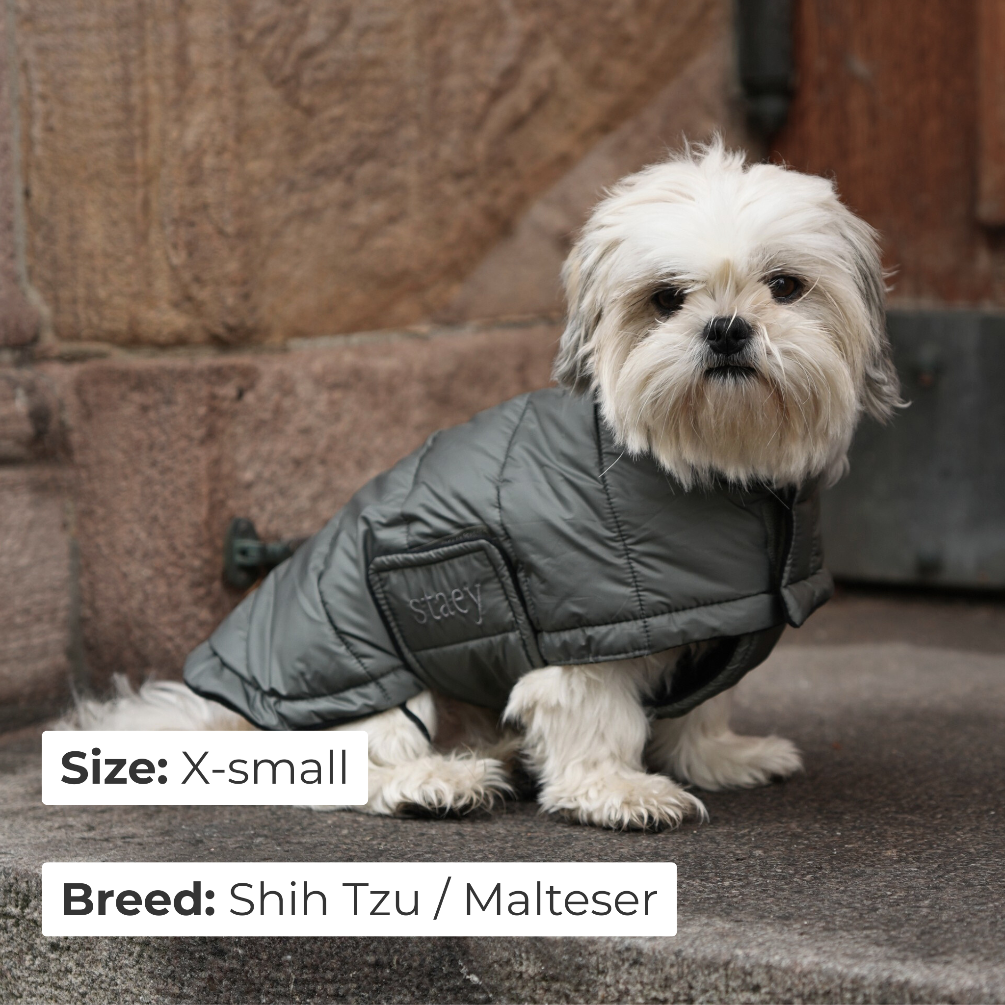 Rigtig flot og lækker kvalitet! Den er helt igennem en god jakke, som er ideel, når det er rigtig koldt. Det er rart, at stykket på maven ikke er stof, der suger vand, men er vandafvisende stof (Jeg synes mange jakker ofte er stof, som suger vand). Dog passer jakken ikke helt min Coton de Tulear, når jeg følger størrelsesguiden. Min vejer 6,7 kg og jeg købte i small (4,5-7 kg), men stofstykket på brystet var for stort og jakken var for bred, så nu har jeg bestilt i ser. XS og håber, at den passer :-)