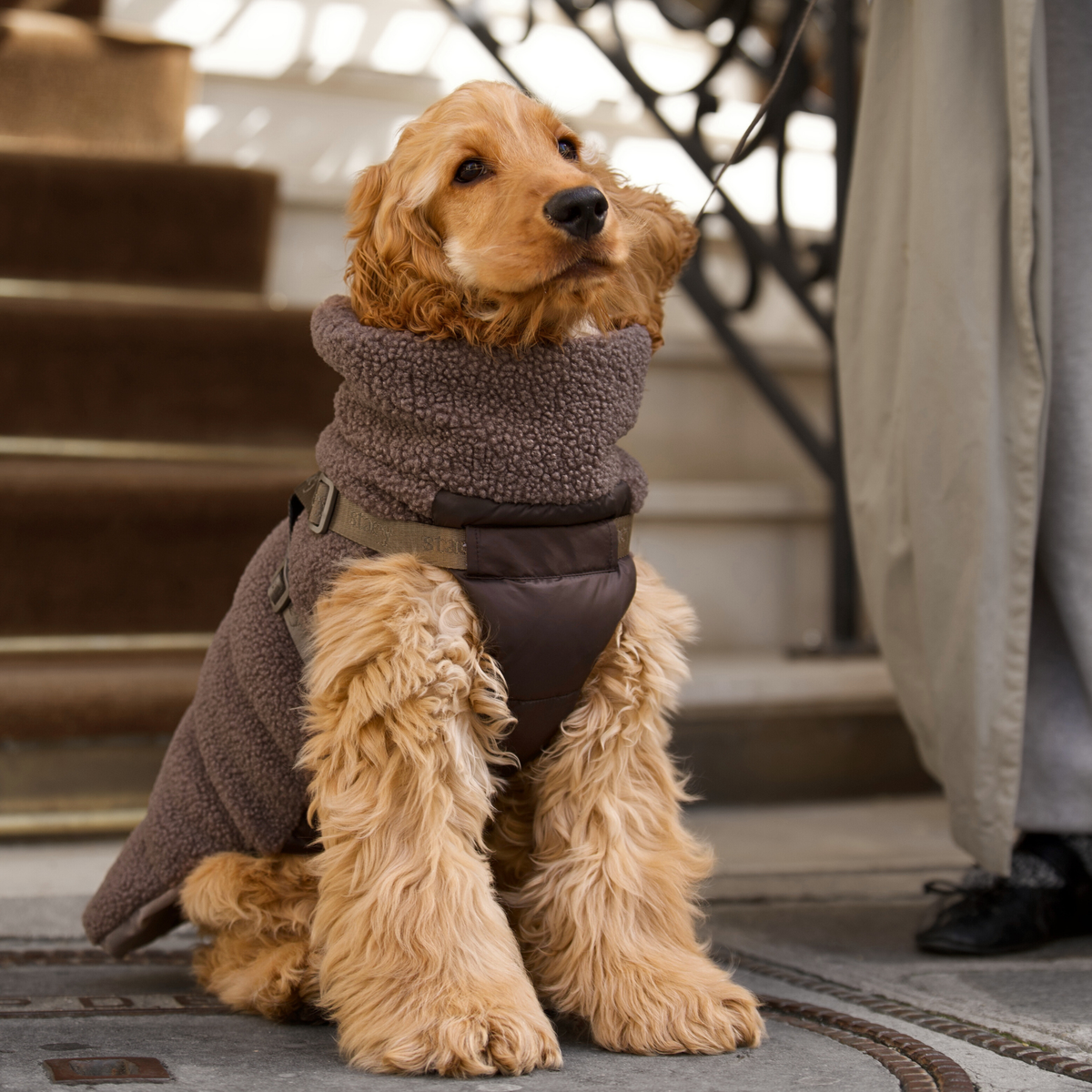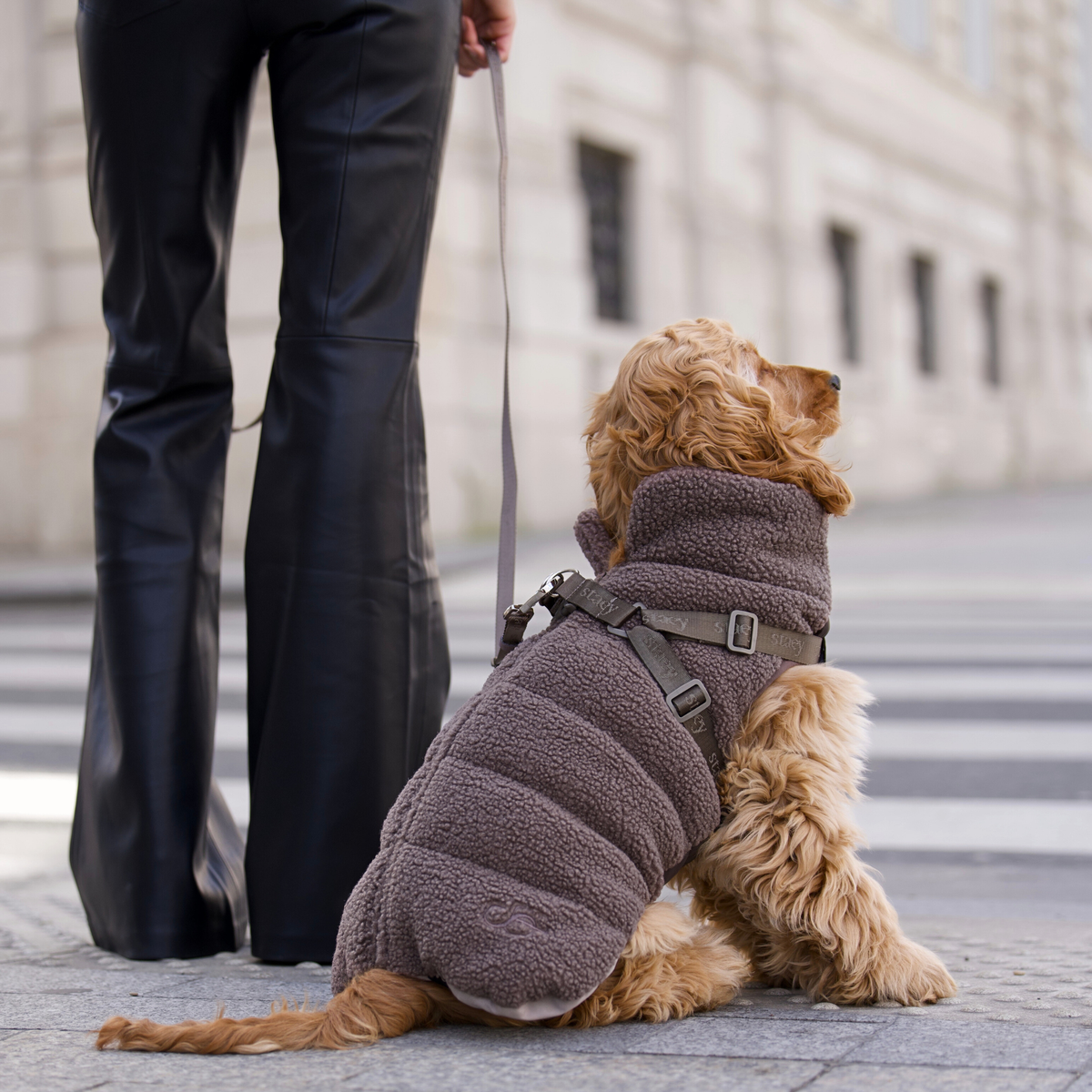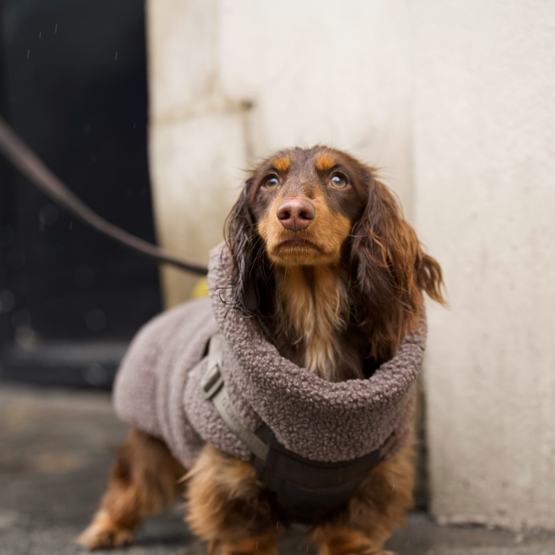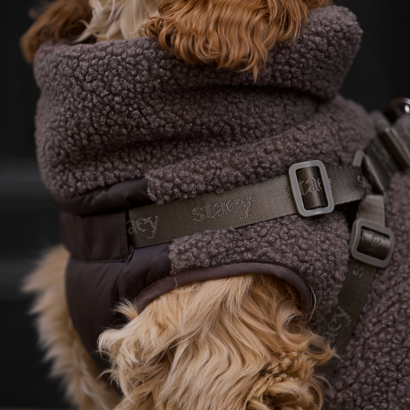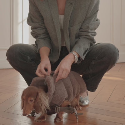 Keep your dog warm, comfortable, and ready for any adventure with our Clara Dog Coat w. Integrated Harness.Part of our stylish Paris Collection and crafted in our signature soft brown teddy material, this is the perfect transitional coat for days when the weather is unpredictable. It protects your dog from wind and chill while offering a cozy, comfortable fit they’ll love wearing.